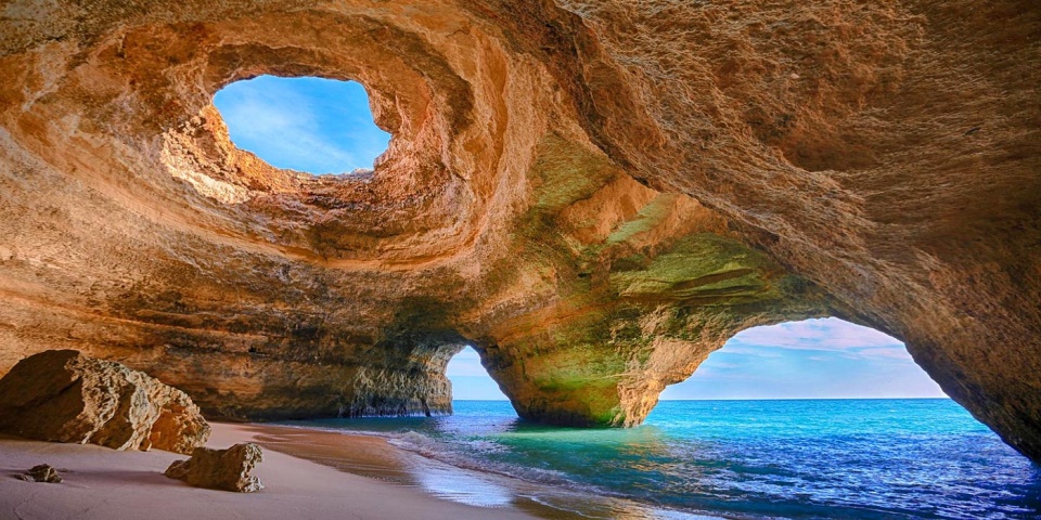 Benagil kis halászfalva Armacao de Péra és Portimao közt fekszik Algarve partjainál. Az aszfaltozott tengerparti út közvetlenül a keskeny fürdőöbölhöz vezet, ennek megfelelően nyáron a tolongás is nagy. A szokatlan sziklaképződmények azonban lenyűgözőek. Nagyon szép turistaút fut a sziklákon keresztül a következő strandhoz, Praia da Marinhához.