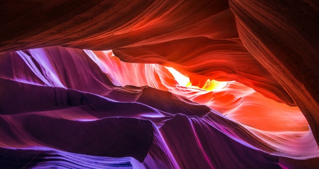 Az Antilop-kanyonban, a világ legnépszerűbb és legtöbbet fényképezett, víz vájta kanyonjában az erózió elképesztő formákat hozott létre, mely a fény játékával kombinálva bámulatba ejti az idelátogatókat.