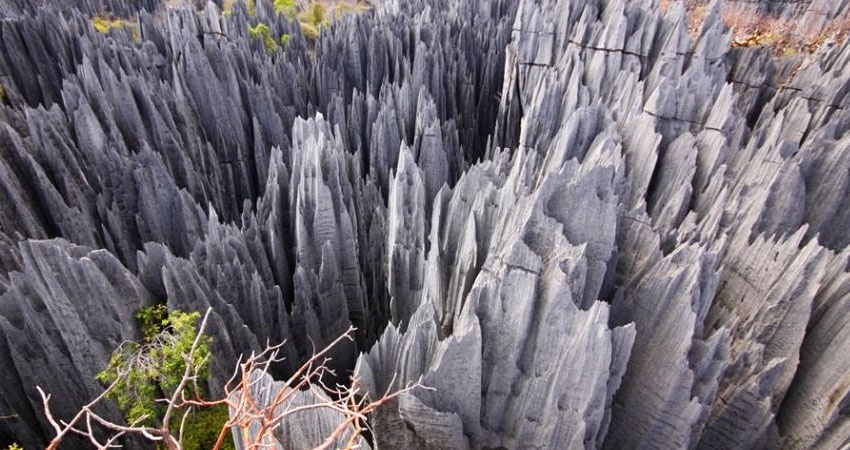 A Tsingy de Bemaraha különleges madagaszkári szürke mészkőformáció, tűhegyes szikláival tarkított hegyvidék láttán az ember egy másik bolygón érezheti magát.