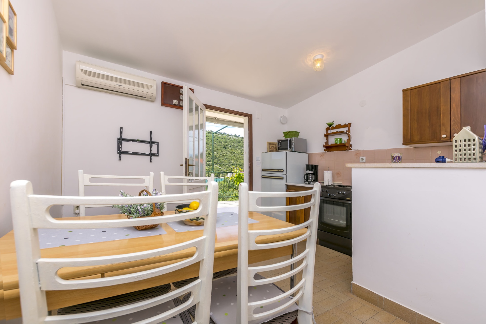 Apartman 5Fő Általános információ Típus: A4+1 Emelet: földszint Kategória: 3 Kilátás: tengerre és zöldövezetre Az apartman mérete: 60 m2 Berendezés és felszereltség Internet: vezeték nélküli Ágynemű és törölközők: Igen Klíma: helyiség része Az adott többletszolgáltatás felára a helyszínen fizetendő Klíma: felár nélkül Internet: felár nélkül Fürdőszoba információ Zuhanyzós fürdőszobák száma: 1 Konyha és nappali Fagyasztó: Igen Kávéfőző: Igen Edények és evőeszközök: Igen Hűtőgép: Igen Mikrohullámú sütő: Igen Vízforraló: Igen Pótágyak száma (nappaliban, étkezőben, konyhában): 1 További információ és szolgáltatás Takarítás: vendégváltáskor Balkon/terasz/kert Terasz: 30 m2 Adatok a szobákról 1 Szoba kapacitás: 2 A szoba alapterülete: 10 m2 Kétszemélyes ágyak száma: 1 Adatok a szobákról 2 A szoba alapterülete: 7 m2 Egyágyas ágyak száma: 2 Szoba kapacitás: 2