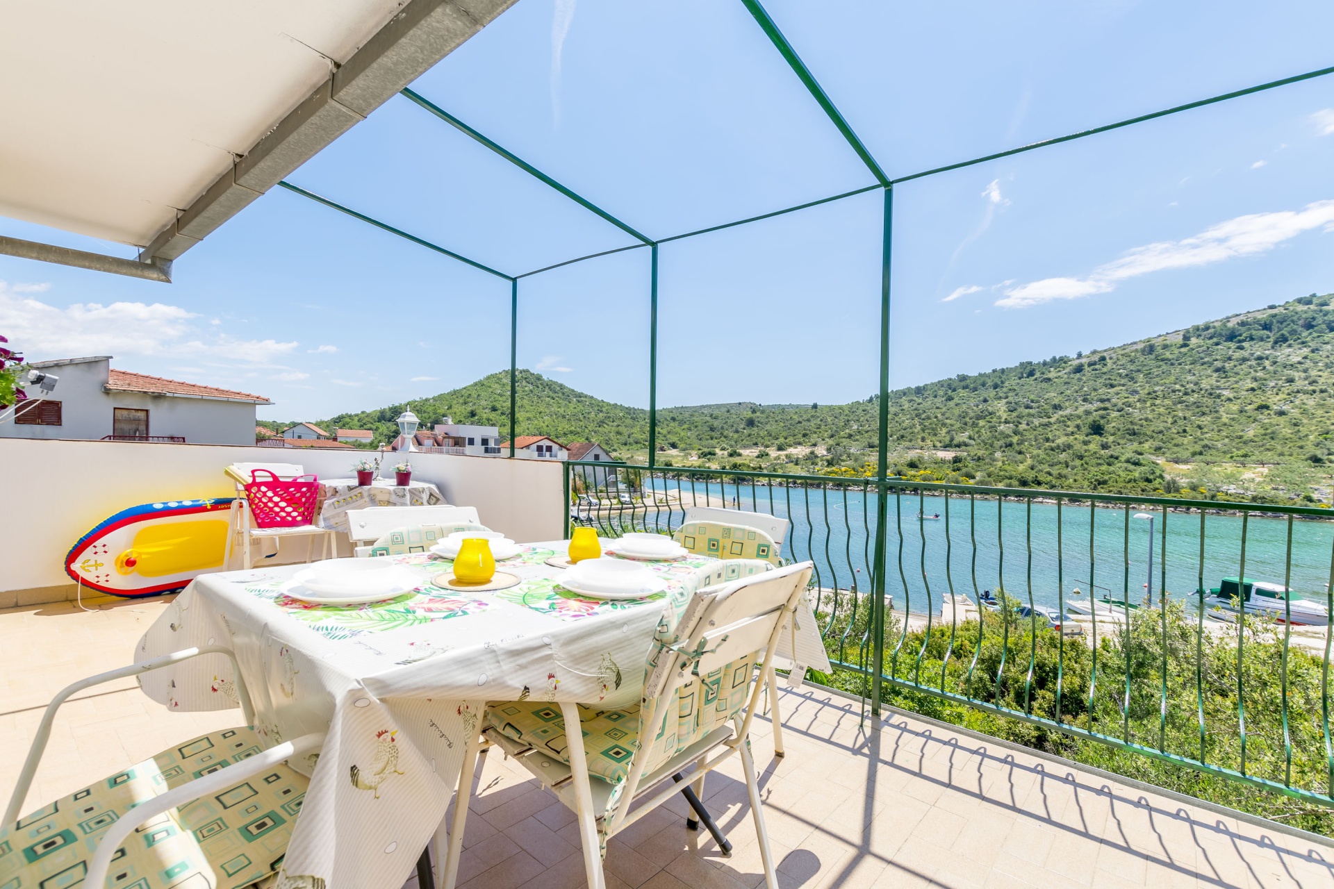 Apartman 4Fő Általános információ Kategória: 3 Emelet: első emelet Típus: A4 Felület: 45 m2 Kilátás: tengerre és zöldövezetre Berendezés és felszereltség Klíma: helyiség része Internet: vezeték nélküli Gyerekágy: kérésre Vasaló: Igen Ágynemű és törölközők: Igen Önkiszolgáló bejelentkezés: Host check-in Az adott többletszolgáltatás felára a helyszínen fizetendő Klíma: felár nélkül Internet: felár nélkül További információ és szolgáltatás Takarítás: vendégváltáskor Konyha és nappali Edények és evőeszközök: Igen Sütő: Igen Főzőlap: Igen Hűtőgép: Igen Fagyasztó: Igen Mikrohullámú sütő: Igen Kávéfőző: Igen Vízforraló: Igen A kert felszerletsége Kültéri zuhanyzó: Igen Megosztott erkély, amely minden vendég és szolgáltató számára elérhető: 30 m2 Fürdőszoba információ Zuhanyzós fürdőszobák száma: 1 Hajszárító: Igen Adatok a szobákról 1 Kétszemélyes ágyak száma: 1 A szoba alapterülete: 12 m2 Szoba kapacitás: 2 Adatok a szobákról 2 Szoba kapacitás: 2 Egyágyas ágyak száma: 2 A szoba alapterülete: 10 m2