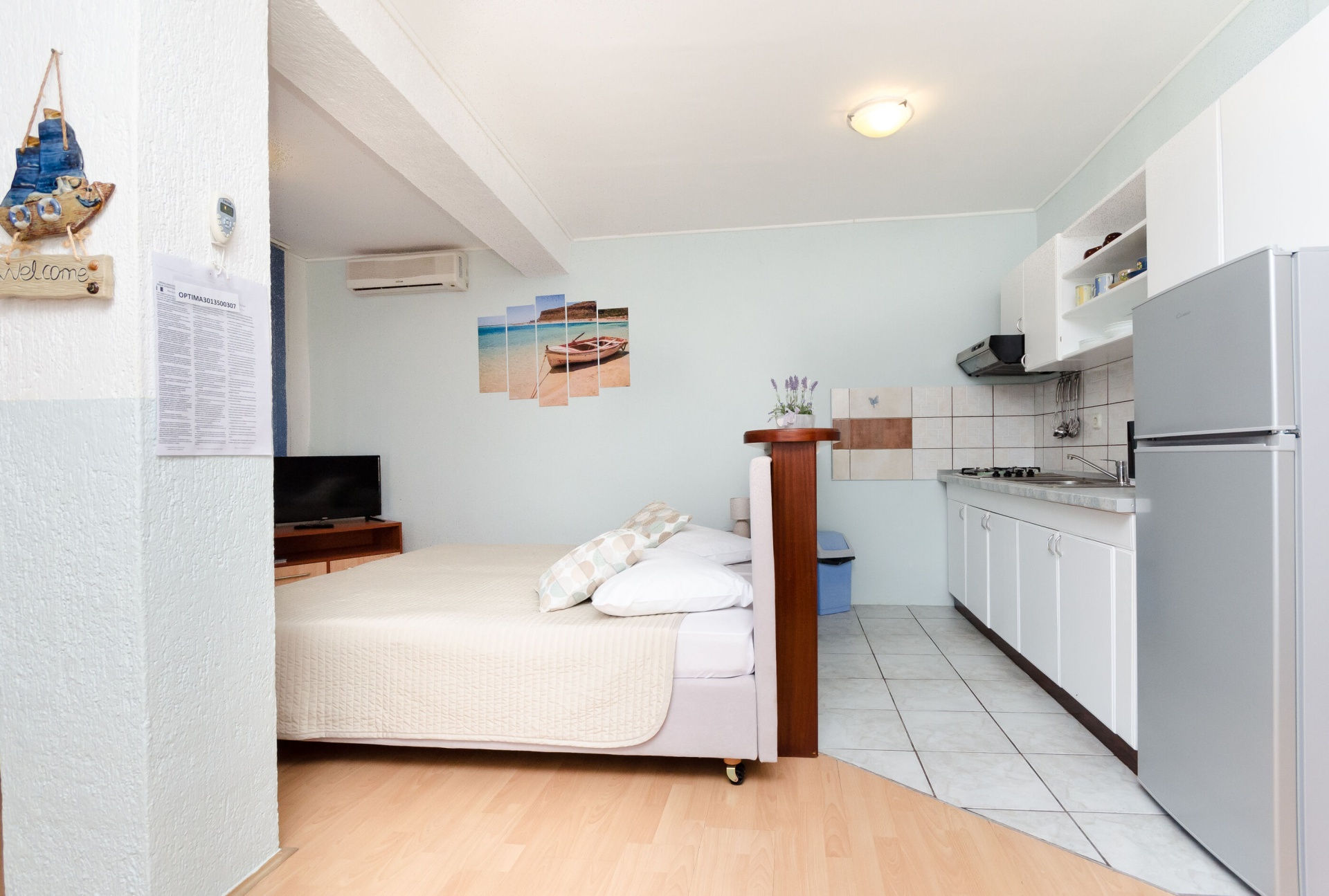 Apartman 3Fő Az adott többletszolgáltatás felára a helyszínen fizetendő Háziállat: 5 €/nap Internet: felár nélkül Klíma: felár nélkül Fűtés: felár nélkül Konyha és nappali Vízforraló: Igen Főzőlap: Igen Edények és evőeszközök: Igen Hűtőgép: Igen Toszter: Igen Fagyasztó: Igen Mikrohullámú sütő: Igen Általános információ Kilátás: tengerre Háziállatok: Háziállat barát szálláshely- az irodával történt előzetes egyeztetés alapján (felár a helyszínen a szállásadónak fizetendő) Felület: 36 m2 Emelet: földszint Kategória: 3 Típus: STUDIO Berendezés és felszereltség Klíma: helyiség része Internet: vezeték nélküli Ágynemű és törölközők: Igen Fűtés: helyiség része Önkiszolgáló bejelentkezés: Host check-in További információ és szolgáltatás Takarítás: vendégváltáskor Stúdió apartman Ágyak száma: 3 Extra ágy: 1 Kétszemélyes ágy: 1 Fürdőszoba információ Hajszárító: kérésre Zuhanyzós fürdőszobák száma: 1 A kert felszerletsége Terasz: 10 m2
