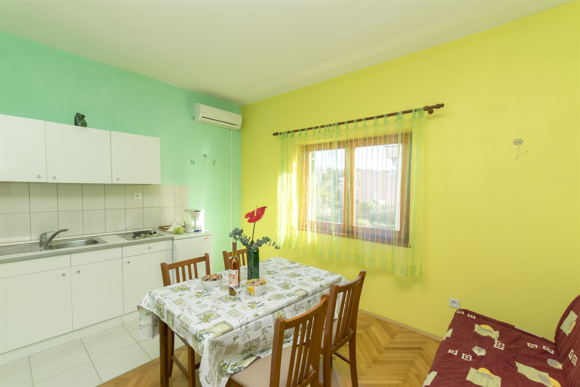 Apartman 4Fő Általános információ Kategória: 3 A dohányzás megengedett: Igen Emelet: földszint Típus: A2+2 Felület: 40 m2 Kilátás: udvarra Berendezés és felszereltség Klíma: helyiség része Internet: vezeték nélküli Ágynemű és törölközők: Igen Önkiszolgáló bejelentkezés: Host check-in Az adott többletszolgáltatás felára a helyszínen fizetendő Klíma: felár nélkül Internet: felár nélkül További információ és szolgáltatás Takarítás: vendégváltáskor Konyha és nappali Pótágyak száma (nappaliban, étkezőben, konyhában): 2 Edények és evőeszközök: Igen Hűtőgép: Igen A kert felszerletsége Terasz: 15 m2 Fürdőszoba információ Zuhanyzós fürdőszobák száma: 1 Hajszárító: kérésre Adatok a szobákról 1 A szoba alapterülete: 13,00 m2 Szoba kapacitás: 2 Kétszemélyes ágyak száma: 1