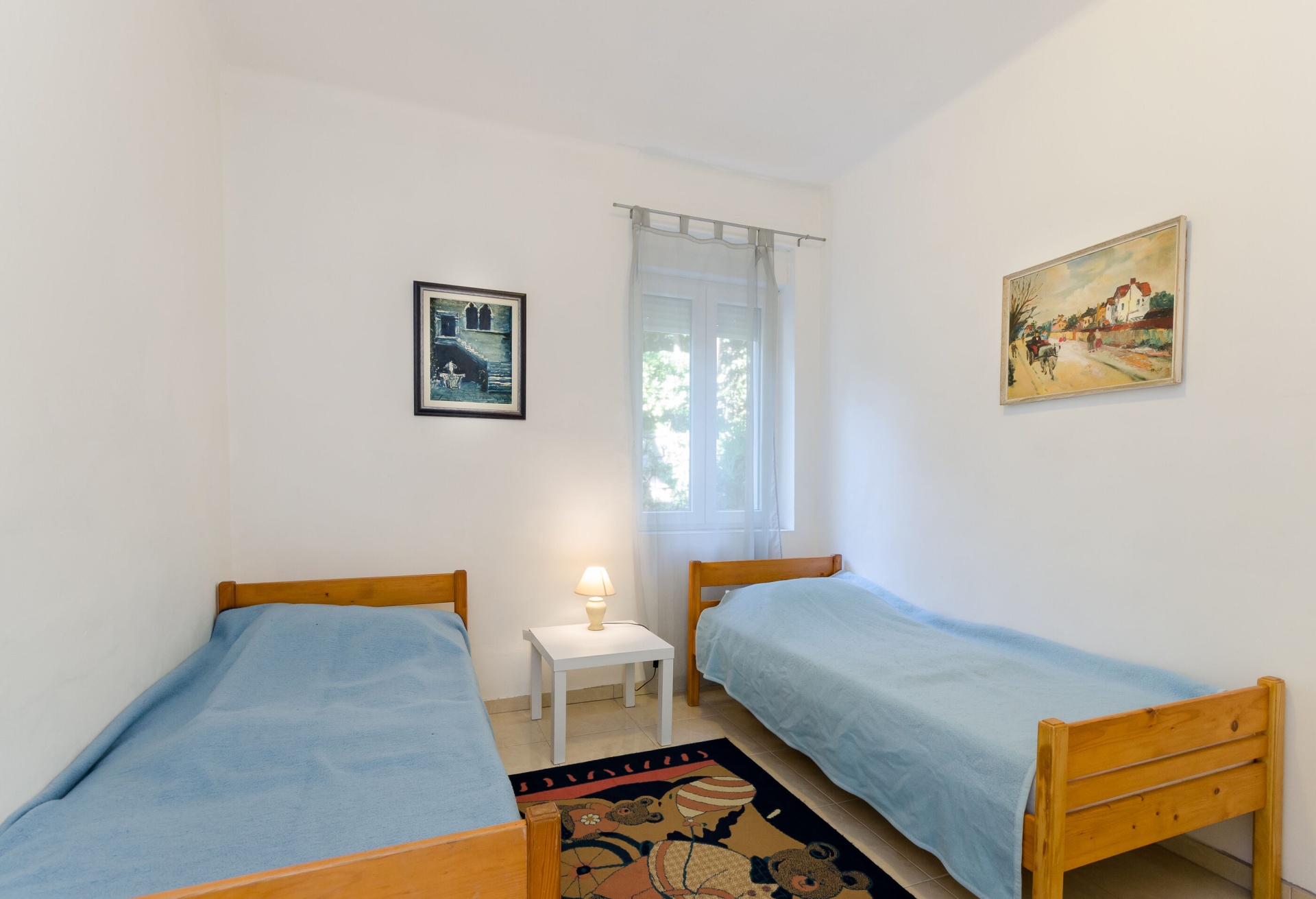 Apartman 5Fő Általános információ Kategória: 3 Típus: A3+2 Háziállatok: Háziállat barát szálláshely- az irodával történt előzetes egyeztetés alapján (felár a helyszínen a szállásadónak fizetendő) Emelet: földszint Kilátás: tengerre és zöldövezetre Felület: 85 m2 További információ és szolgáltatás Takarítás: vendégváltáskor Berendezés és felszereltség Mosógép: Igen Ágynemű és törölközők: Igen Internet: vezeték nélküli Fűtés: helyiség része Klíma: helyiség része Önkiszolgáló bejelentkezés: Host check-in Konyha és nappali Főzőlap: Igen Fagyasztó: Igen Hűtőgép: Igen Sütő: Igen Pótágyak száma (nappaliban, étkezőben, konyhában): 1 Kávéfőző: Igen Edények és evőeszközök: Igen Fürdőszoba információ Fürdőkádas fürdőszobák száma: 1 Hajszárító: kérésre A kert felszerletsége Terasz: 5 m2 Az adott többletszolgáltatás felára a helyszínen fizetendő Internet: felár nélkül Klíma: felár nélkül Fűtés: felár nélkül Háziállat: 10 €/nap Adatok a szobákról 1 Szoba kapacitás: 2 A szoba alapterülete: 16,00 m2 Kétszemélyes ágyak száma: 1 Adatok a szobákról 2 Egyágyas ágyak száma: 1 Szoba kapacitás: 2 Pótágyak száma: 1 A szoba alapterülete: 12,00 m2