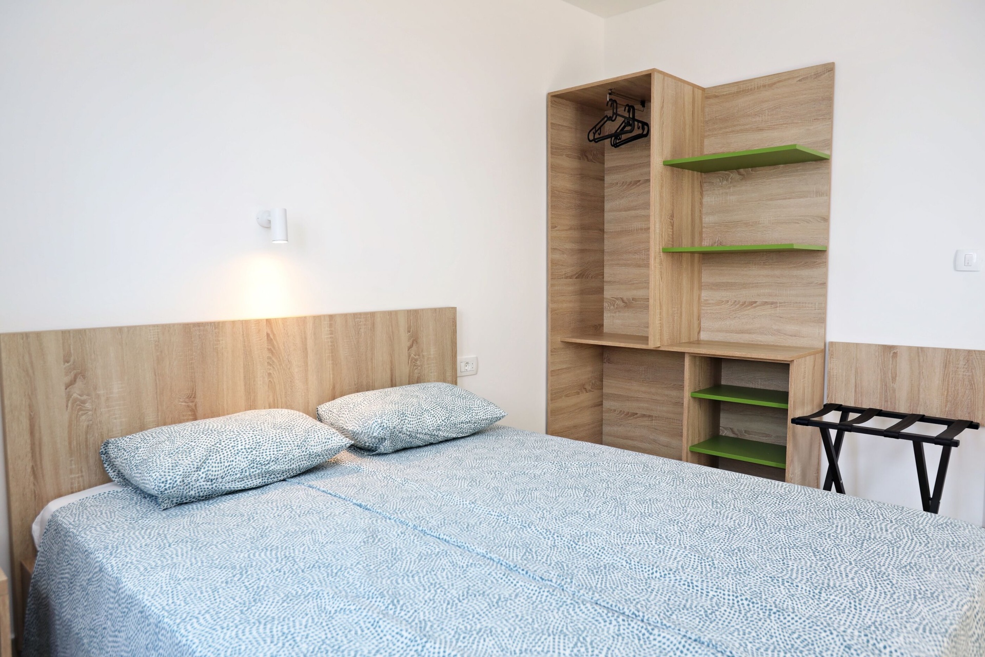 Apartman 5Fő Általános információ Emelet: második emelet Kilátás: tengerre Típus: A4+1 Felület: 44 m2 Berendezés és felszereltség Fűtés: helyiség része Klíma: helyiség része Radiókészülék: Igen Internet: vezeték nélküli Gyerekágy: kérésre Ágynemű és törölközők: Igen Önkiszolgáló bejelentkezés: Host check-in Konyha és nappali Hűtőgép: Igen Edények és evőeszközök: Igen Fagyasztó: Igen Főzőlap: Igen Mikrohullámú sütő: Igen Kávéfőző: Igen Vízforraló: Igen Pótágyak száma (nappaliban, étkezőben, konyhában): 1 Az adott többletszolgáltatás felára a helyszínen fizetendő Klíma: felár nélkül Fűtés: felár nélkül Internet: felár nélkül Fürdőszoba információ Hajszárító: Igen Zuhanyzós fürdőszobák száma: 1 A kert felszerletsége Megosztott terasz, amely minden vendég és szolgáltató számára elérhető: 88 m2 Erkély: 10 m2 További információ és szolgáltatás Takarítás: hetente egyszer Adatok a szobákról 1 Szoba kapacitás: 2 Kétszemélyes ágyak száma: 1 A szoba alapterülete: 13 m2 Adatok a szobákról 2 A szoba alapterülete: 12 m2 Szoba kapacitás: 2 Egyágyas ágyak száma: 2