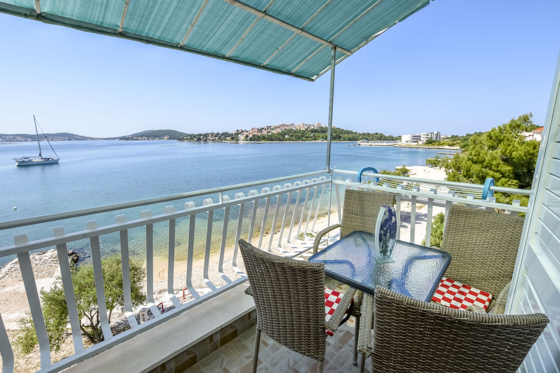 Apartman 4Fő Általános információ Kategória: 3 Emelet: első emelet Típus: A4 Felület: 56 m2 Kilátás: tengerre Berendezés és felszereltség Fűtés: helyiség része Klíma: helyiség része Internet: vezeték nélküli Ágynemű és törölközők: Igen Önkiszolgáló bejelentkezés: Host check-in Az adott többletszolgáltatás felára a helyszínen fizetendő Klíma: felár nélkül Fűtés: felár nélkül Internet: felár nélkül Konyha és nappali Edények és evőeszközök: Igen Sütő: Igen Főzőlap: Igen Hűtőgép: Igen Fagyasztó: Igen Mikrohullámú sütő: Igen Vízforraló: Igen A kert felszerletsége Kültéri zuhanyzó: Igen Terasz: 8 m2 Fürdőszoba információ Zuhanyzós fürdőszobák száma: 1 Adatok a szobákról 1 Szoba kapacitás: 2 Kétszemélyes ágyak száma: 1 A szoba alapterülete: 16 m2 Terasz/Erkély: Igen Adatok a szobákról 2 Szoba kapacitás: 2 Egyágyas ágyak száma: 2 A szoba alapterülete: 14 m2