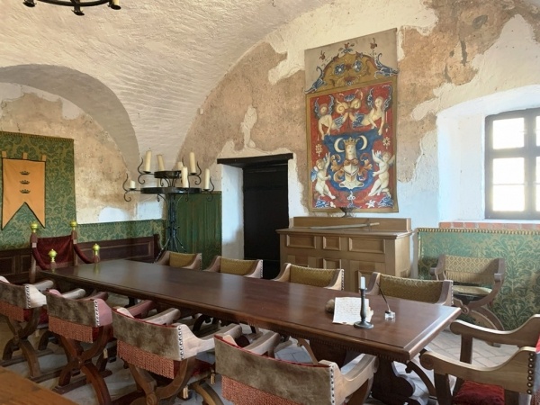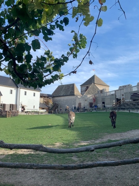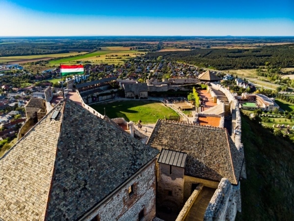 A külső, majd a belső várkapun belépve jutunk a várudvarra, ahol igazi középkori hangulat fogadja a látogatót, zászlók lengedeznek, ágyúcsövek meredeznek.