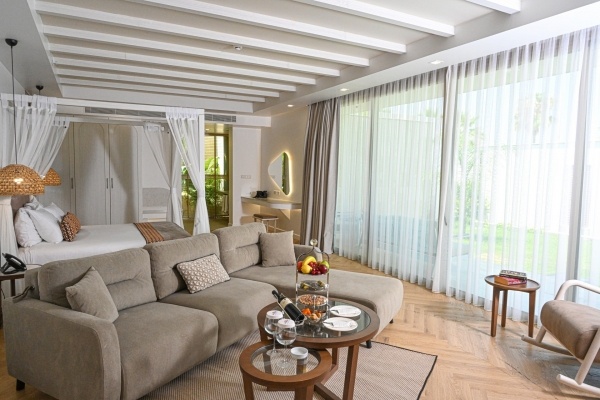 Az ötcsillagos szállodakomplexum három épülete és bungalói hatalmas területen helyezkednek el, melyhez egy csodálatos, 1 km hosszú, privát strand is tartozik. A főépületi rész több épületből áll, melyek a tengerparttól különböző távolságra helyezkednek el. A hotel a szabadidős tevékenységek széles skáláját kínálja vendégei számára: az aktív pihenést kedvelők számára számos sportolási lehetőséget, a pihenni vágyóknak medencét és wellness-szolgáltatásokat. Ideális gyermekes családok számára, akik a nemrégiben nyílt aquaparkban is kikapcsolódhatnak.