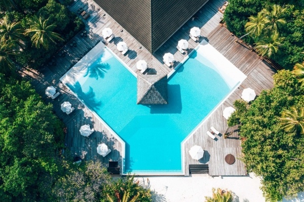 - Trópusi növényzettel körülvett medence