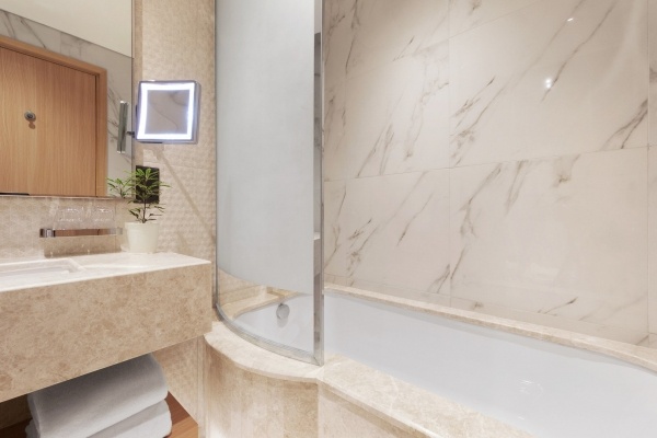 Két fő számára (1 pótágy vagy 2 pótágy gyermekek számára elérhető), kb. 61 m?, két helyiség: nappali és hálószoba. Két fürdőszoba zuhanyzóval és káddal, WC-vel, hajszárítóval, köntössel, papuccsal és kozmetikai készlettel. Légkondicionált, felszerelt konyhasarok: edények, evőeszközök, vízforraló, hűtőszekrény, indukciós főzőlap, mikrohullámú sütő. Vezeték nélküli internet, műholdas televízió, széf, kávé/tea készlet. Ingyenes kiságy 2 év alatti gyermekek számára, előzetes foglalás szükséges.