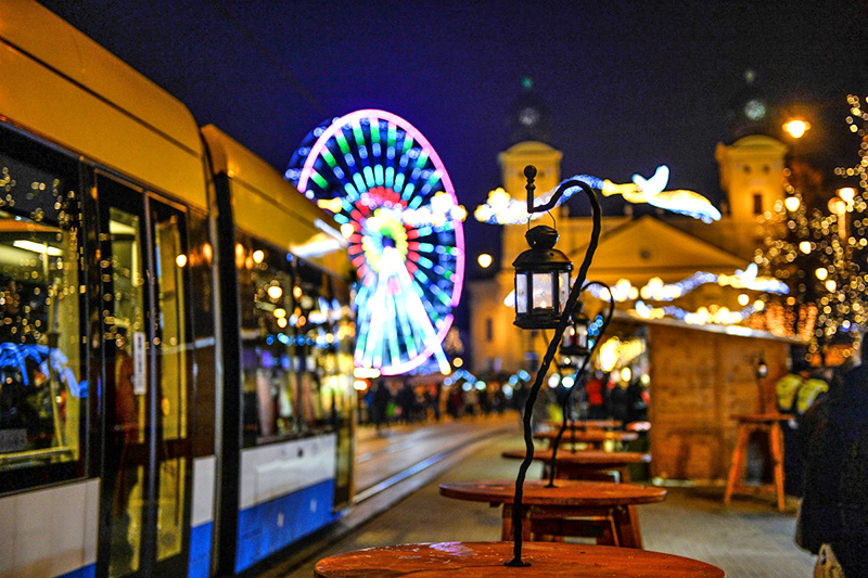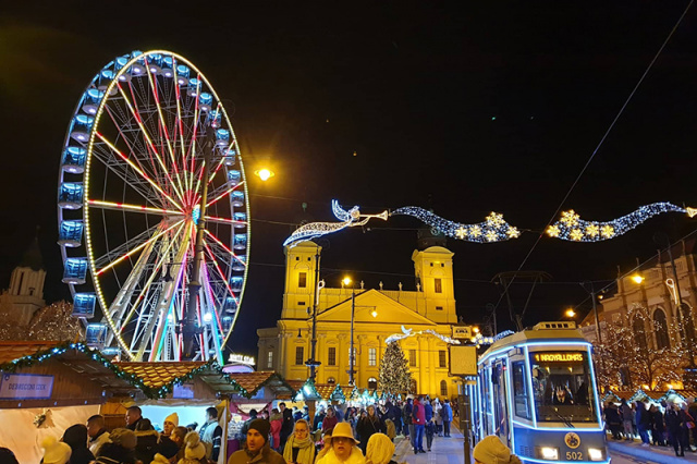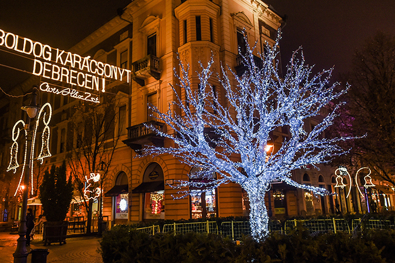 A Hortobágyon keresztül második legnépesebb városunkba, Debrecenbe érkezünk. Városnéző sétánk során érdekességeket tudhatnak meg a város kialakulásáról, múltjáról, híres épületeiről és egykori híres lakóiról is. A "kávinista Rómaként" és "cívisvárosként" is ismert város történelme bővelkedik a fordulatokban; kétszer volt színhelye Országgyűlésnek és 1849-ben rövid időre az ország fővárosává is vált. A Piac utca és a Kossuth tér az adventi időszakban díszbe öltözik, a finomságokat és kézműves remekeket áruló fabódék között sétálgatva hangolódhatunk az ünnepre, de a város múzeumai is remek időeltöltési lehetőségeket kínálnak a délutáni szabadidő alatt. A Déry Múzeumban a híres Munkácsy Krisztus-trilógia mellett megtekitnhető a város és környéke mellett az emberiség múltját komplexen bemutató látványos régészeti kiállítás, valamint a helytörténeti gyűjtemény is. Az adventi vásáron talákozhatunk a "kackiás verklissel", aki zenélő szerkezetével a rendezvélny egyik központi figutrája, fotózkohatunk a fénygömb, a jégfa és más látványos installációk között, vagy megcsonádlhatjuk a Régi Városháza élő Betlehemét is.