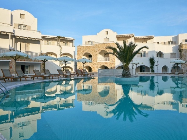A kívül tradicionális, de belül modern szálloda, majdnem a tengerparton (30 méterre) helyezkedik el, Kamari központjától csak pár perc sétára. 2 medence, fitneszterem és spa szolgáltatások várják a vendégeket!