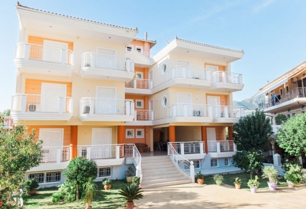 A kiváló elhelyezkedésű apartmanház Nidri központjától kb. 400 méterre, míg a homokos/aprókavicsos tengerparttól csupán kb. 50 méterre található, a Dimosari folyó mellett.