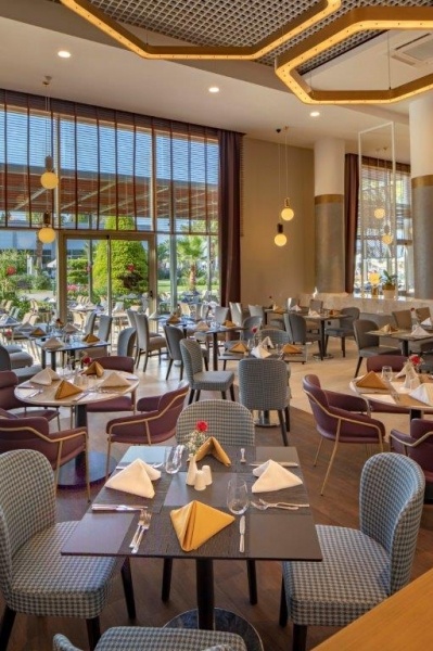 - Ultra All Inclusive: Reggeli, ebéd és vacsora büférendszerben, éjjeli snackek (21:30-07:00), diétás és vegetáriánus ételek, palacsinta és gofri délután, kávé/tea és sütemények, helyi és import alkoholos és alkoholmentes italok 24 órában, 5 a'la carte étterem (török, tengergyümölcsei, olasz, ázsiai, mexikói, tartózkodás során 1 alkalommal, előzetes asztalfoglalással).
