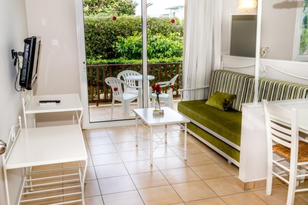 Szobák: minden szoba (~26m2) és családi apartman (~40m2) a kerti épületekben található, kényelmes és jól felszerelt, légkondicionált, fürdőszobás, konyhasarokkal (benne: tűzhellyel, hűtővel, vízforralóval, kenyérpirítóval, evőeszközökkel, edényekkel, étkészlettel), hajszárítóval, síkképernyős tv-vel és telefonnal felszerelt. A családi apartman tökéletes választás családok számára, mivel több helyet és privát szférát biztosít, nagyobb alapterületű, két helységgel (hálószobával és nappalival, nappaliban étkezővel és szófával, ami ággyá vagy ülőbútorrá is alakítható) rendelkezikk. A szobához erkély vagy terasz tartozik. Szobaszéf a helyszínen térítés ellenében igényelhető.