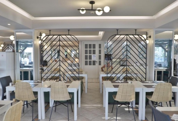 Félpanziós ellátás , amely svédasztalos reggelit és vacsorát foglal magában. A reggeli kínálatában hideg és meleg ételek, pékáruk, gyümölcsök, joghurtok, valamint kávé és tea szerepelnek. A vacsora során nemzetközi és görög specialitásokból válogathatnak a vendégek.