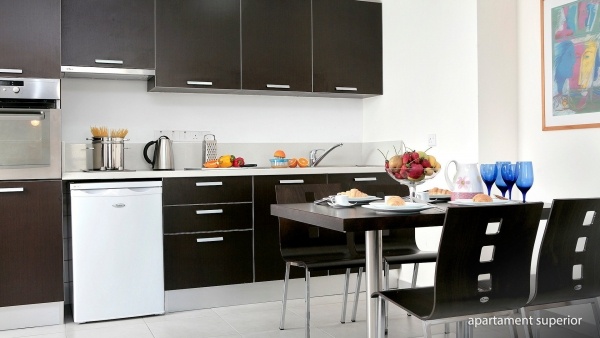 A superior apartmanok (kb. 44 m?) hálószobával és nappalival, konyhasarokkal, káddal és zuhannyal felszerelt fürdőszobával rendelkeznek, ideálisak több fő elhelyezésére. A deluxe stúdió lakosztályok (kb. 36 m?) modern berendezésűek, fürdőszobájukban zuhany, hajszárító, köntös, papucs és kozmetikai készlet található, a konyhasarok és az erkély a kényelmet szolgálja. Az executive lakosztályok (kb. 40 m?) prémium felszereltséggel, Nespresso kávéfőzővel, konyhasarokkal és medencére vagy tengerre néző erkéllyel várják a vendégeket.