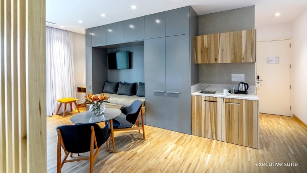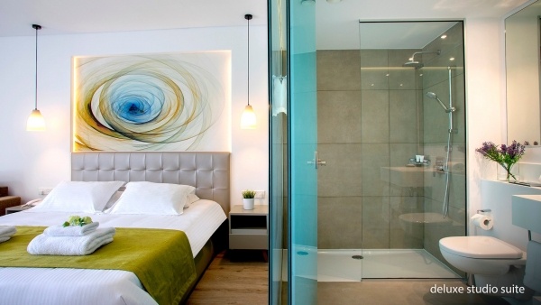 A superior apartmanok (kb. 44 m?) hálószobával és nappalival, konyhasarokkal, káddal és zuhannyal felszerelt fürdőszobával rendelkeznek, ideálisak több fő elhelyezésére. A deluxe stúdió lakosztályok (kb. 36 m?) modern berendezésűek, fürdőszobájukban zuhany, hajszárító, köntös, papucs és kozmetikai készlet található, a konyhasarok és az erkély a kényelmet szolgálja. Az executive lakosztályok (kb. 40 m?) prémium felszereltséggel, Nespresso kávéfőzővel, konyhasarokkal és medencére vagy tengerre néző erkéllyel várják a vendégeket.