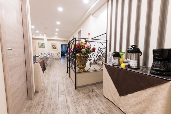 A szálloda reggelizőterme svédasztalos kínálattal várja a vendégeket, ahol elsősorban ízletes olasz ételeket kóstolhatnak.