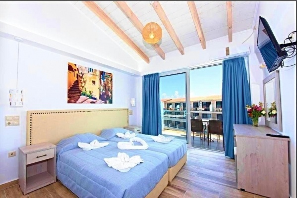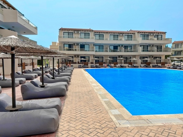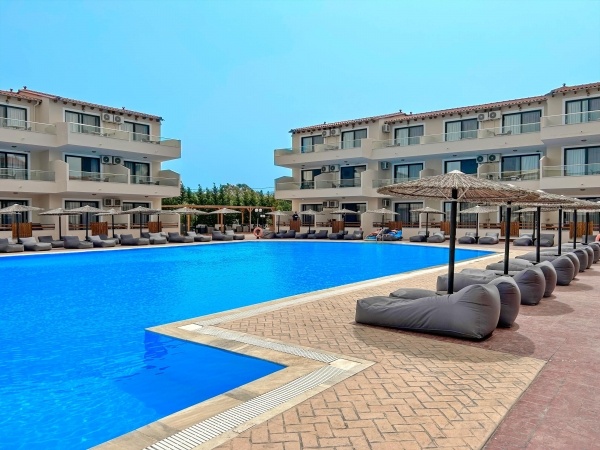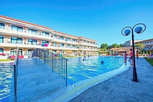 A szépen kialakított, több épületből álló szálloda közvetlenül a tengerparton fekszik. Tágas szobákkal és gyermekcsúszdákkal is várja a vendégeket. A létesítménytől buszjárat közlekedik a kb. 3 km-re fekvő Roda közpotjába, ahol hangulatps tavernák találhatók. Ideális választás a pihenésre vágyó vagy családdal utazó vendégek számára.