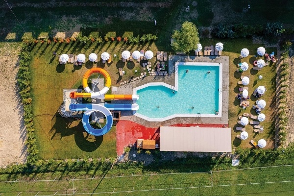 A szálloda az Angela Beach 3*-os komplexum része (elülső épületek), az újabb/tágasabb Family Deluxe épületek a komplexum hátsó részén találhatók, saját étteremmel, bárokkal és medencékkel. A vendégek mindkét szálloda szolgáltatásait igénybe vehetik.