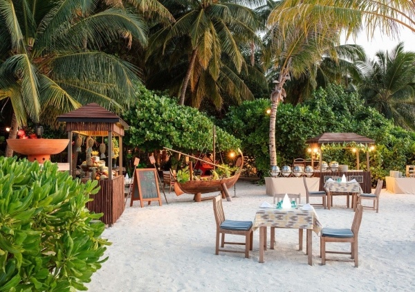 A szállodában három étterem található. A Kaani étterem büfé és ? la carte ételeket kínál nemzetközi konyhával, a Funa étterem az óceán feletti teraszon helyezkedik el és szintén ? la carte nemzetközi ételeket kínál, míg az Azzurro étterem és bár a vízen lévő villák részén található, és ? la carte olasz konyhát kínál. A medence mellett a Kuredhi bár várja a vendégeket.
