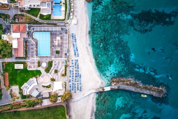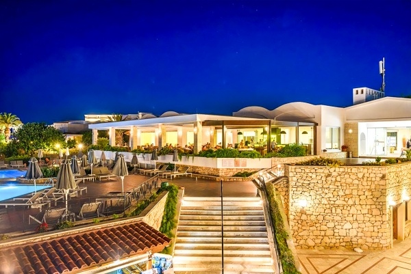 A törzsutasok körében kedvelt, hatalmas szállodakomplexum tipikus krétai stílusában épült és több villaépületből áll, melyek egy nagy kertben találhatóak. A szálloda saját homokos strandja elnyerte az EU kék zászlós minősítést. Elsősorban gyermekes családoknak ajánljuk.