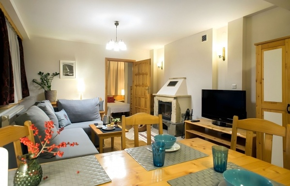 Bystra Villában található apartman hálószobával és erkéllyel 4 fő elhelyezésére alkalmas, alapterülete körülbelül 45-48 m?. A fűtött apartmanban külön hálószoba és ajtóval elválasztott nappali található. A fürdőszoba káddal vagy zuhanyzóval, WC-vel, hajszárítóval és mosógéppel felszerelt. A konyhasarok vízforralóval, tűzhellyel, hűtőszekrénnyel és mosogatógéppel rendelkezik. A vendégek kényelmét vezeték nélküli internet, televízió, vasalókészlet, valamint erkéllyel ellátott részleges kilátás a Giewontra biztosítja. Ugyanitt elérhető egy 6 fős apartman is, amely két hálószobával, erkéllyel és hasonló felszereltséggel rendelkezik. A hálószobák és a nappali szintén ajtóval elválasztottak, az erkélyről pedig a Giewontra vagy a Gubałówkára nyílik kilátás.