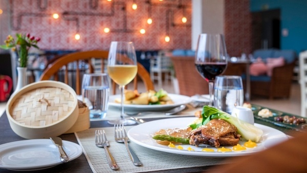 Büfé és ? la carte ételek, helyi és nemzetközi konyha, az étteremben elérhető gyerekülések és gyerekmenü, vegetáriánus ételek bár