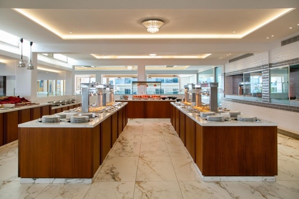 Étkezés: félpanzió, bőségessvédasztalos reggelivel (friss gyümölcsök, pékáruk, hideg és meleg fogások, tojásételek, zöldségek, joghurtok és különféle italok - kávé, tea, gyümölcslevek - teszik teljessé a kínálatot) és büfé vacsorával. Felár ellenében all inclusive ellátás foglalható, benne: reggeli, ebéd és vacsora, délutánonként kávé és tea illetve korlátlan italfogyasztás 10-24 óra között (helyi alkoholos és alkoholmentes italok). Mind a reggeli, ebéd és vacsorák során kiemelt figyelmet fordítanak az ételek minőségére, frissességére, és igyekeznek minden ételallergiát vagy diétás igényt is kielégíteni. Napközben snackek és könnyű ételek, gyorséttermi ételek is elérhetők, valamint jégkrémek, kávé és sütemények a délutáni órákban. Előzetes helyszíni regisztrációval heti egy alkalommal vacsora átjelentkezést a szálloda a' la carte éttermeibe (Koralli Seafood és Golden Sands Italian Restaurant).