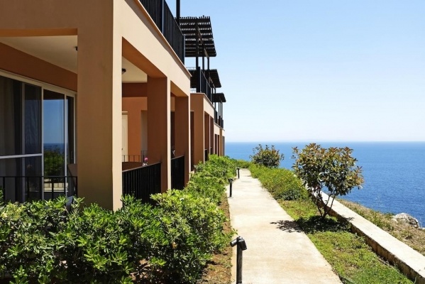 A főépületből és több melléképületből álló szálloda Skala határában, egy domboldalban fekszik, lélegzetelállító kilátással a sziget nyugati partjára. Skala központja kb. 2 km-re (ingyenes szállodai buszjárat), a menetrend szerinti busz megállója kb. 500 m-re.
