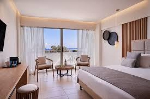 Szobák: minden standard szoba világos és elegáns, modern és kényelmes berendezéssel, egy hálószobás (~22m2), fürdőszobás, légkondicionálóval, hajszárítóval, síkképernyős tv-vel, telefonnal, vízforralóval (tea és kávékészítési lehetőség) és minibárral felszerelt. Minden standard szobához erkély vagy terasz tartozik szárazföldre, oldal tengerre néző vagy tengerre néző kilátással. A szuperior szoba modern dizájnnal és prémium kényelmi szolgáltatásokkal (színvilága harmonizál a tengerrel), a szobákban fürdőköpeny és szobapapucs is található, még kényelmesebb elhelyezést biztosít a nagyobb alapterületű (~27m2) és tengerre néző erkéllyel rendelkező szoba.