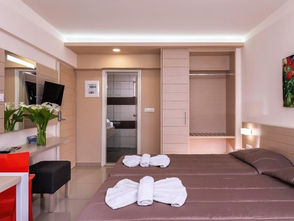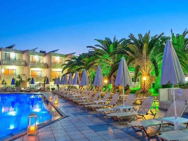 Nagyon jó elhelyezkedésű,főépületből és háromszintes épületekből álló 130 szobás hotel, amely150 m-re található a Kék Zászlóval kitüntetett homokos strandtól, nyüzsgő helyen, éttermek és szórakozóhelyek közvetlen közelében. Chania városa csak 9 km.