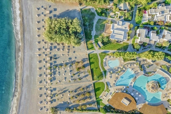 A teljesen felújított szálloda a sziget keleti részén fekszik, kb. 3 km-re Kiotaritól és 10 perc autóútra Lindos városától és az akropolisztól. A fővárosa kb. 55 km-re található. A családbarát szálloda egy szépen gondozott, szubtrópusi kertben helyezkedik el, közvetlenül a Kék Zászló díjjal kitüntetett tengerparton.