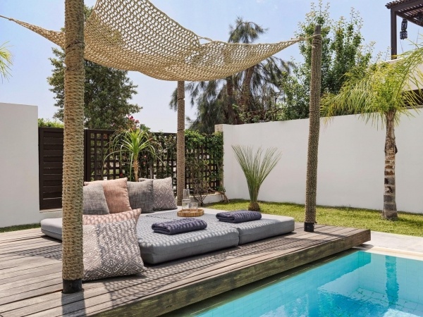 - Bohemian suitek - nappali és hálószoba ajtóval elválasztva, tágasabbak, saját medence és saját kert