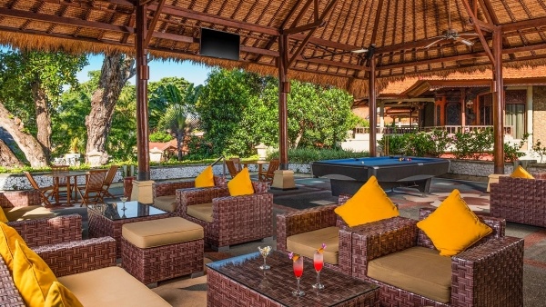 A szálloda étteremválasztéka széleskörű és változatos. A Cempaka étterem/bár a medencénél található, ahol ? la carte étkezési lehetőségek várják a vendégeket, indonéz és balinéz étkezési különlegességekkel. A Ratna étterem/bár büfé formájú étkezést kínál, elsősorban tengeri ételekkel és grillezett fogásokkal. A Soka étterem/bár a tengerparton helyezkedik el, és nemzetközi konyhát kínál büfé formájában. Emellett két bár is rendelkezésre áll: a Rijasa Lobby Bar és a Sriwedari Sunken Bar. Az All Inclusive ellátás 24 órán keresztül elérhető, reggelit 7:00-10:30 között, ebédet 13:00-14:30 között, vacsorát pedig 19:00-21:30 között kínálnak büfé formájában a választható éttermekben. Snackek 16:30-17:30 között állnak rendelkezésre a kijelölt helyeken. A Soka étteremben/bárban alkoholmentes italok és helyi alkoholos italok 24 órán át elérhetők. A 24 órás all inclusive karszalag viselése kötelező a szolgáltatások igénybevételéhez.