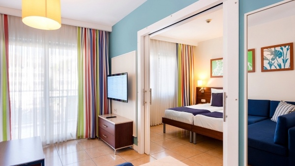 Lakosztály: 2 fő részére (2 pótágy lehetőséggel), kb. 45 m? klimatizált hálószoba és fürdőszoba (kád vagy zuhanyzó, WC, hajszárító), vezeték nélküli internet, televízió, felszerelt konyhasarok (tűzhely, vízforraló, mikrohullámú sütő, hűtőszekrény, kenyérpirító), kávé-/teafőző készlet, széf, erkély (asztal és székek) felár ellenében: minibár (fogyasztás szerint fizetendő).