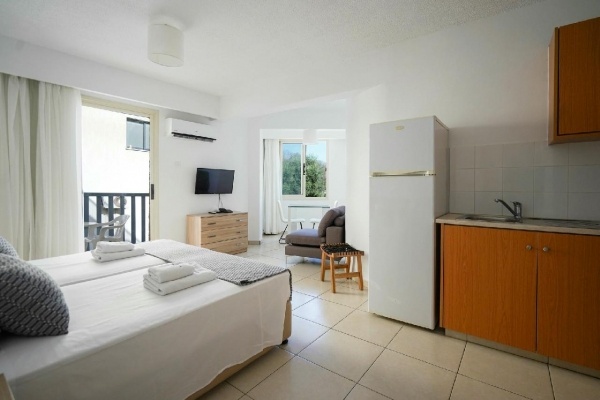 Paphos központjában, a város Kato Paphos elnevezésű részén, az archeológiai park (festői görög és római romok) közelében, a városi tengerparti sétánytól ~80 méterre, a kikötőtől pedig mindösszesen 600 méterre épült, rendkívül népszerű, több épületblokkból álló ,,A" kategóriás (legmagasabb besorolás) apartmanhotel-komplexum.
