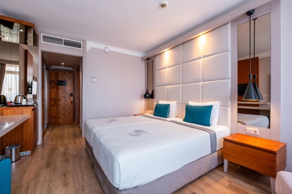 |A szobákat légkondicionáló berendezéssel, központi fűtéssel és fürdőszobával szerelték fel. A legtöbb szobában erkély gondoskodik a kilátásról. A legtöbb szoba oldalról néz a tengerre. A szőnyegpadlóval kialakított szobákban egy franciaágy vagy egy king size ágy várja a vendégeket. A gyerekeknek kiságyat biztosítanak. Van továbbá egy minibár és felár ellenében a széf is rendelkezésre áll. A kényelmet szolgálja továbbá egy hűtőszekrény és egy tea-/kávéfőző. A nyaralás kényelmét szolgálja az internet-hozzáférés, a telefon, a TV-készülék és WiFi. Mozgáskorlátozottaknak kialakított szobák is foglalhatóak. A fürdőszobák felszereléséhez zuhanyzó és fürdőkád tartozik. Rendelkezésre áll továbbá egy hajszárító. Családi szobát és nem dohányzó szobát is foglalható.