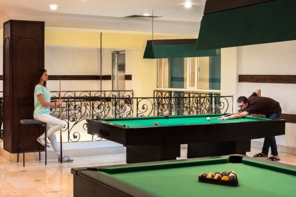 Saját strand,szezonálisan fűtött medence; beltéri és kültéri játszótér; orvosi ügyelet, recepció; napközben animáció, este zenés programok; konditerem, jacuzzi, masszázs (térítés ellenében); 4 étterem, 4 tematikus bár, napozóterasz.