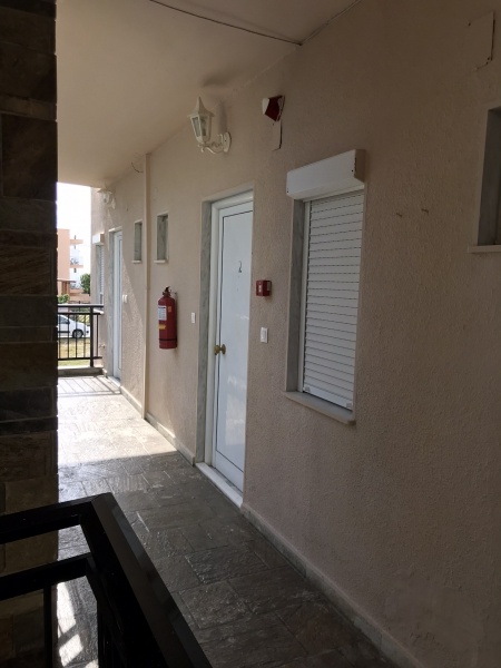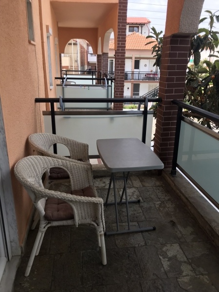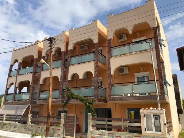 Az apartmanház Sarti új részén (Village) fekszik, kb. 70 méterre a homokos-aprókavicsos tengerparttól és kb. 500 méterre a központtól. A közelben éttermek, tavernák és pékség is található, ahol a híres ,,Liturgia" nevű kenyér is kapható.