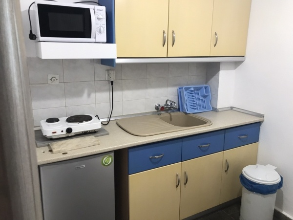 - 2-3 ágyas stúdiók: az apartmanház 1. emeletén helyezkednek el, a szobákban a konyhasarok a hálótérrel egy légtérben található. A 3.fő részére a pótágy normál ágy.
