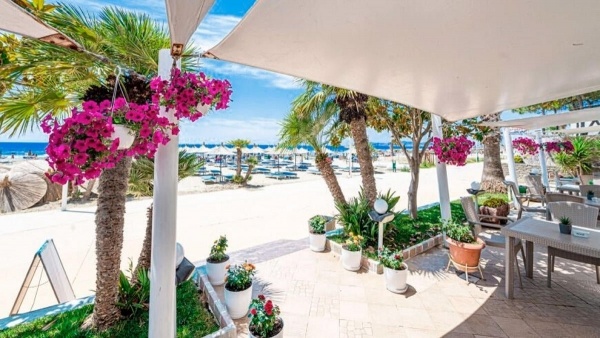 A homokos, enyhén lejtős strand, közvetlenül a szálloda mellett húzódik, ahol a napernyők, napozóágyak ingyenesen vehetők igénybe.