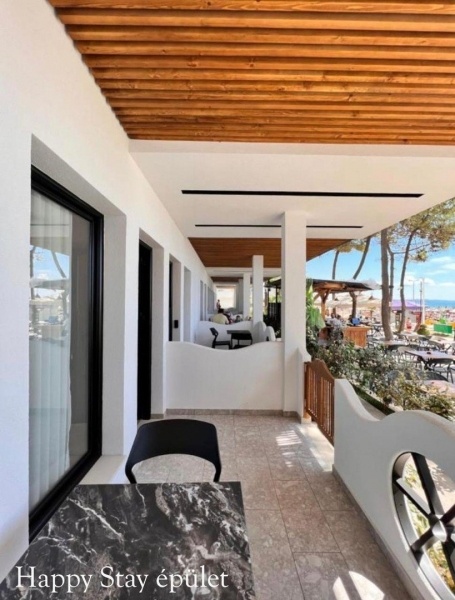 A homokos, enyhén lejtős strand, közvetlenül a szálloda mellett húzódik, ahol a napernyők, napozóágyak ingyenesen vehetők igénybe.