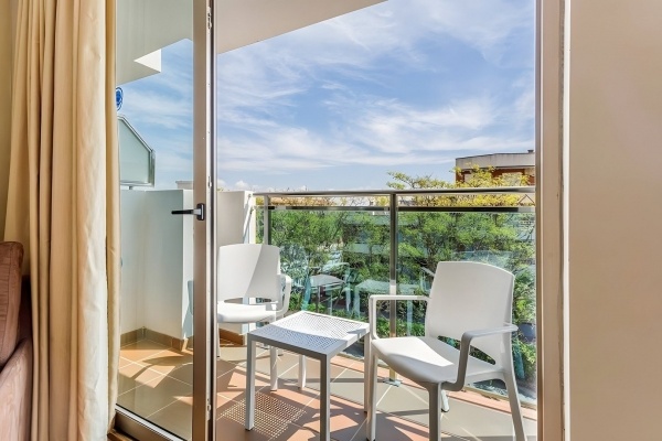 A szálloda előtt elterülő nyilvános, homokos strand hosszú partszakasszal és enyhe lejtéssel vezet a tengerhez, így ideális a kényelmes fürdőzéshez és napozáshoz. A strand a sétányon keresztül könnyen megközelíthető, a vendégek pedig díj ellenében napernyőket és napozóágyakat vehetnek igénybe.