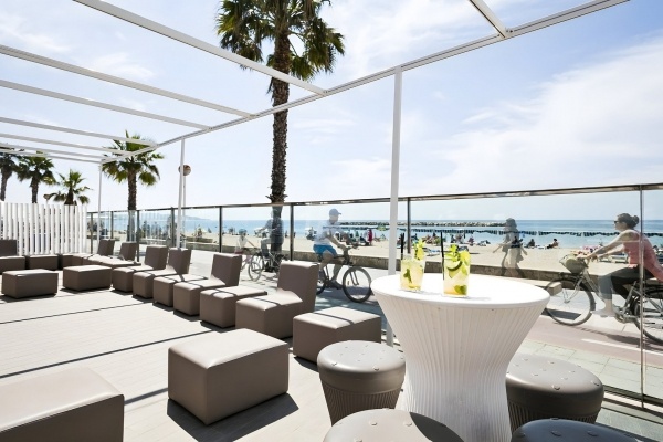 A szálloda előtt elterülő nyilvános, homokos strand hosszú partszakasszal és enyhe lejtéssel vezet a tengerhez, így ideális a kényelmes fürdőzéshez és napozáshoz. A strand a sétányon keresztül könnyen megközelíthető, a vendégek pedig díj ellenében napernyőket és napozóágyakat vehetnek igénybe.