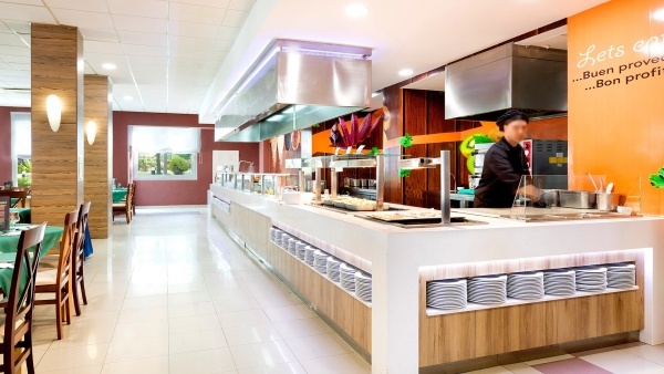 A szálloda étkezési lehetőségei között egy étterem található, ahol büfé jellegű ételek, nemzetközi konyha és show főzés várja a vendégeket. A családos vendégek számára etetőszékek és gyerekmenü, valamint vegetáriánus fogások és előzetes rendelésre gluténmentes ételek is elérhetők. Az étteremben kötelező az elegáns öltözködés, az uraknak hosszú nadrág viselése ajánlott. A szállodában két bár működik, egy a lobbyban és egy a medencénél. A vendégek két- vagy háromszori étkezés közül választhatnak.