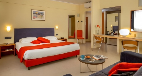 A szálloda csendes, mégis kiváló elhelyezkedésének köszönhetően könnyedén felfedezheted Róma legszebb látnivalóit, hiszen mindössze kb. 7 km-re található a városközponttól, miközben alig 500 méteren belül boltok, éttermek és bárok várnak. A Spanyol lépcső, a Spanyol tér és a Forum Romanum kb. 6 km-re, a Colosseum és a Pantheon kb. 7 km-re, míg a Vatikán kb. 10 km-re érhető el. A közlekedés egyszerű és gyors, hiszen a legközelebbi buszmegálló csupán kb. 200 méterre helyezkedik el. A repülőterek is könnyen megközelíthetők: a Róma-Ciampino repülőtér kb. 20 km-re, a Róma-Fiumicino repülőtér pedig kb. 50 km-re található, így akár érkezéskor, akár induláskor kényelmes utazásra számíthatsz.