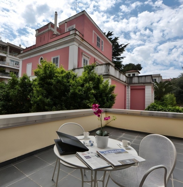 A szálloda Róma csendesebb városrészében, a központtól körülbelül 5 km-re található, így ideális választás azoknak, akik nyugodt pihenésre vágynak, de szeretnék könnyen elérni a város nevezetességeit. A közelben éttermek, bárok és üzletek is találhatók, mindössze néhány perc sétára. A Basilica Papale di Santa Maria Maggiore 2,7 km-re, a Colosseum 3,5 km-re, a Forum Romanum 4 km-re, míg a Trevi-kút és a Pantheon nagyjából 5-5,5 km-re helyezkedik el. A Navona tér és a Castel Sant'Angelo is könnyen megközelíthető, mintegy 6-7 km távolságban. A közlekedés kényelmes: a Re di Roma metróállomás 300 méterre, a San Giovanni metróállomás 900 méterre, a buszmegálló pedig mindössze 400 méterre található. A Róma-Ciampino repülőtér 12 km-re, a Róma-Fiumicino repülőtér pedig 27 km-re fekszik.
