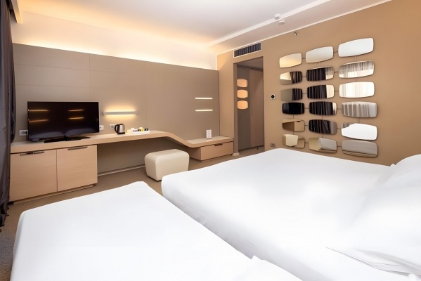 A standard duplaágyas szoba két fő részére, egy pótágy lehetőségével gyermek számára, kb. 25 m?-es. Egyénileg szabályozható légkondicionálással rendelkezik. A fürdőszobában zuhanyzó vagy kád, WC, bidé és hajszárító találhatók. A szobában egy duplaágy, vezeték nélküli internet, műholdas televízió, telefon, széf, vízforraló, kis hűtőszekrény és vasalókészlet (kérésre) áll rendelkezésre. Ingyenes kiságy 2 éves korig, előzetes kérésre. Kilátás a környékre.